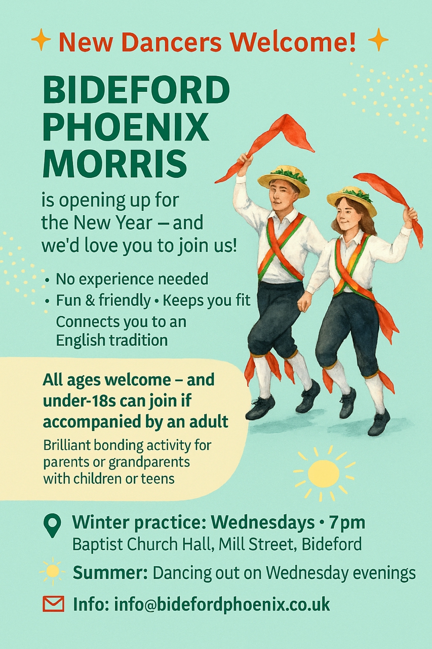 Bideford Phoenix Morris is opening its doors to new dancers of all ages and experience levels in the New Year — and everyone is welcome to come along and give it a try.